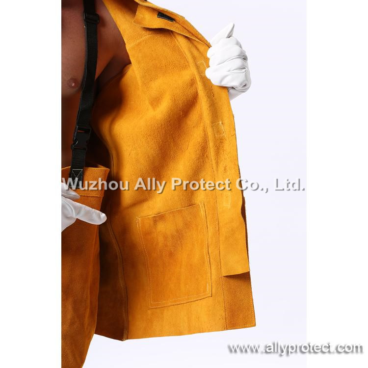 - Product description: [ AP ]CE certificated.Full leather welding jacket for perfect protection and Golden colour make products fashion and showy.