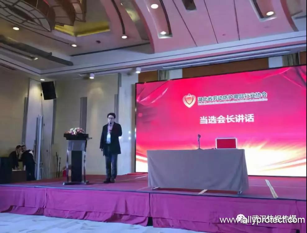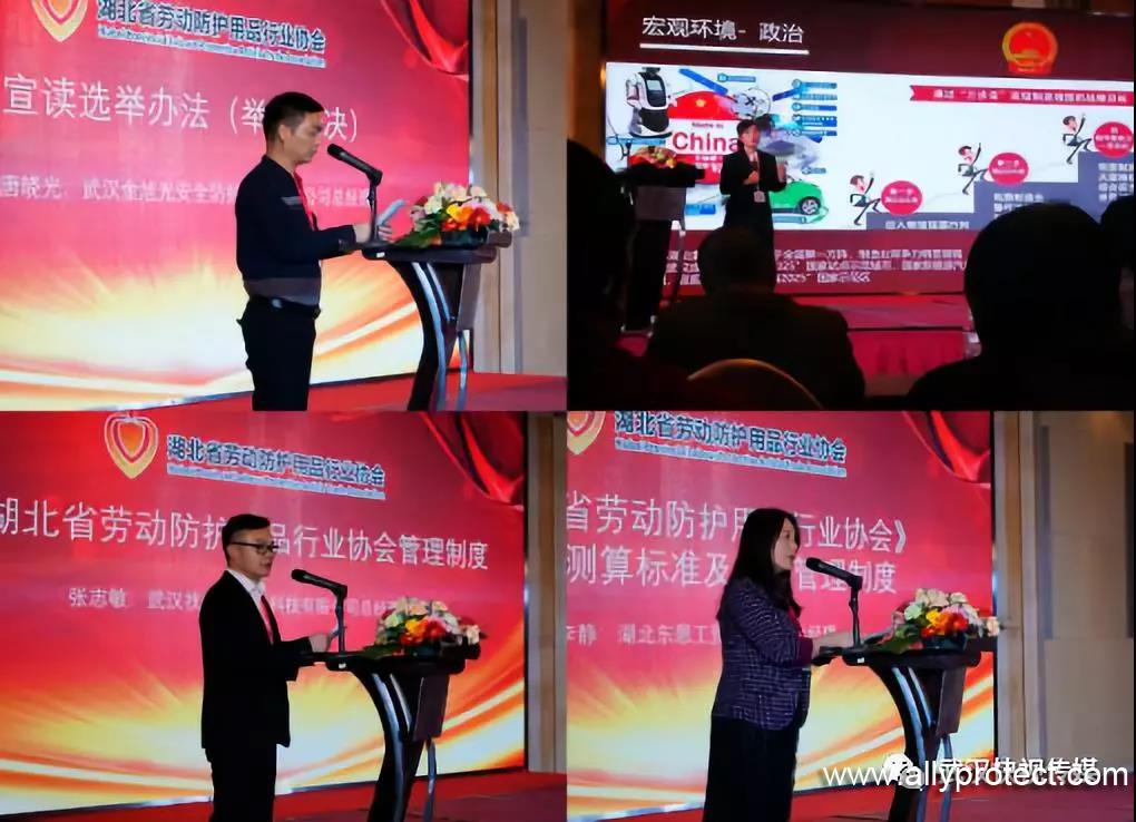 2019年3月9日,湖北省勞動防護用品行業協會正式成立,協會第一屆第一次會員大會在武漢光明萬麗大酒店召開。湖北省民政廳社會組織管理局副局長姜健,湖北省工商聯會員部部長江勇,國家勞動保護用品質量監督檢驗中心武漢站主任劉宏斌、教授程鈞,中國紡織品商業協會安全健康防護用品委員會秘書長高飛,浙江省安全健康防護用品行業協會秘書長王良基,中國鐵路武漢局集團有限公司物資供應段主任趙恒,卓爾集團商管處,湖北省企業國際合作協會等領導及嘉賓出席大會,并致以祝賀。