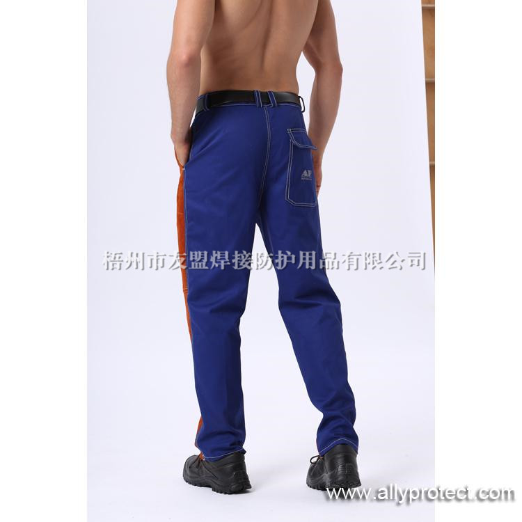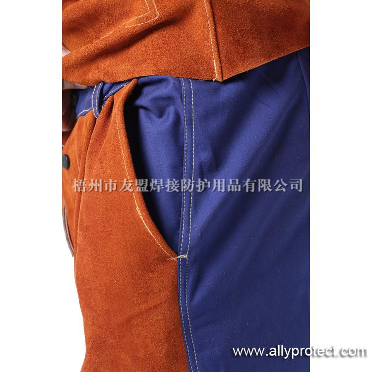 AP-6062 咖啡色皮配藍色阻燃布焊褲