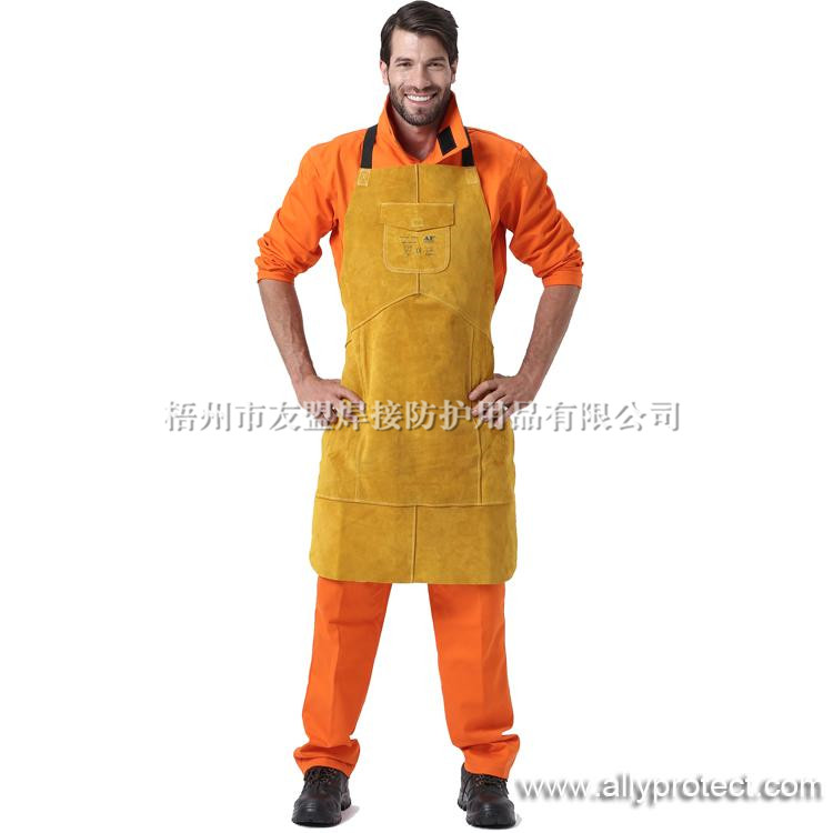 - 產品描述: [ AP ]金黃色牛二層芯皮全皮護胸圍裙,專為保護前身設計,方便實用。