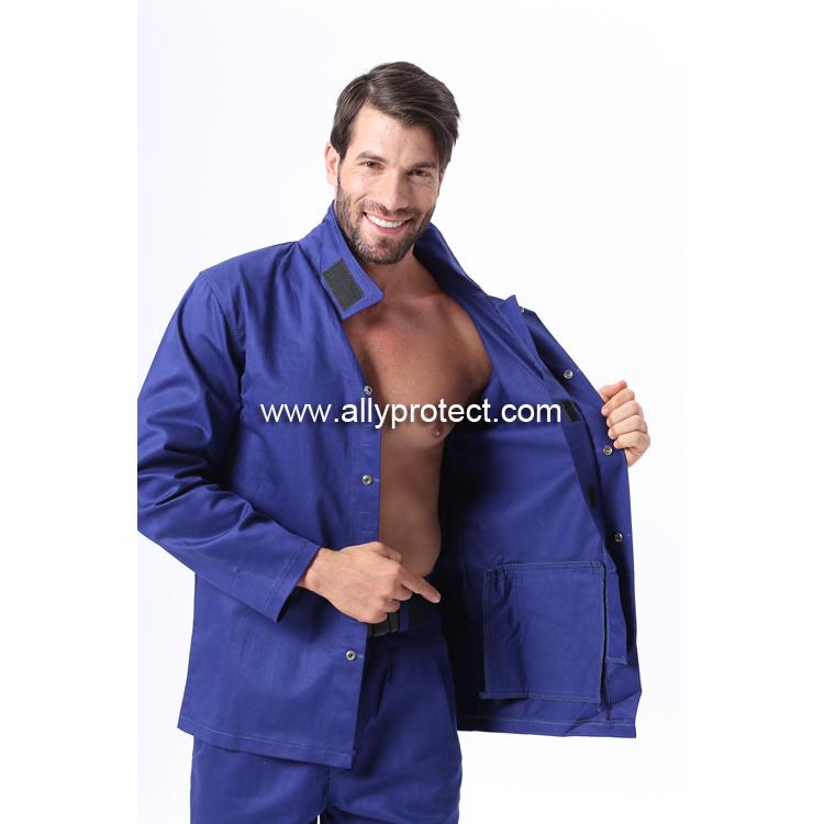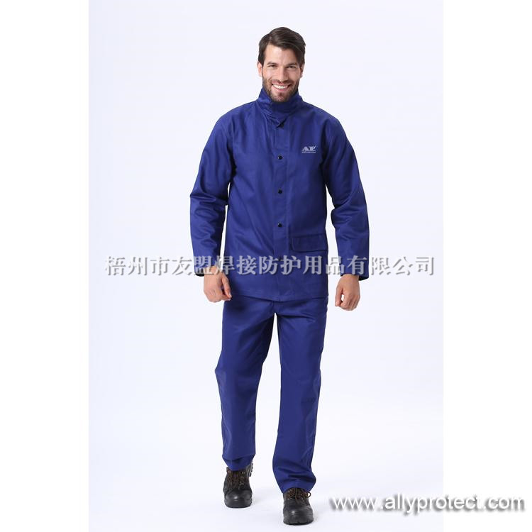 - 產品描述: 藍色防火阻燃服,可水洗不縮水,推薦適用于燒焊、鑄造、化工、石油、機電等有火焰或火警的危險行業。