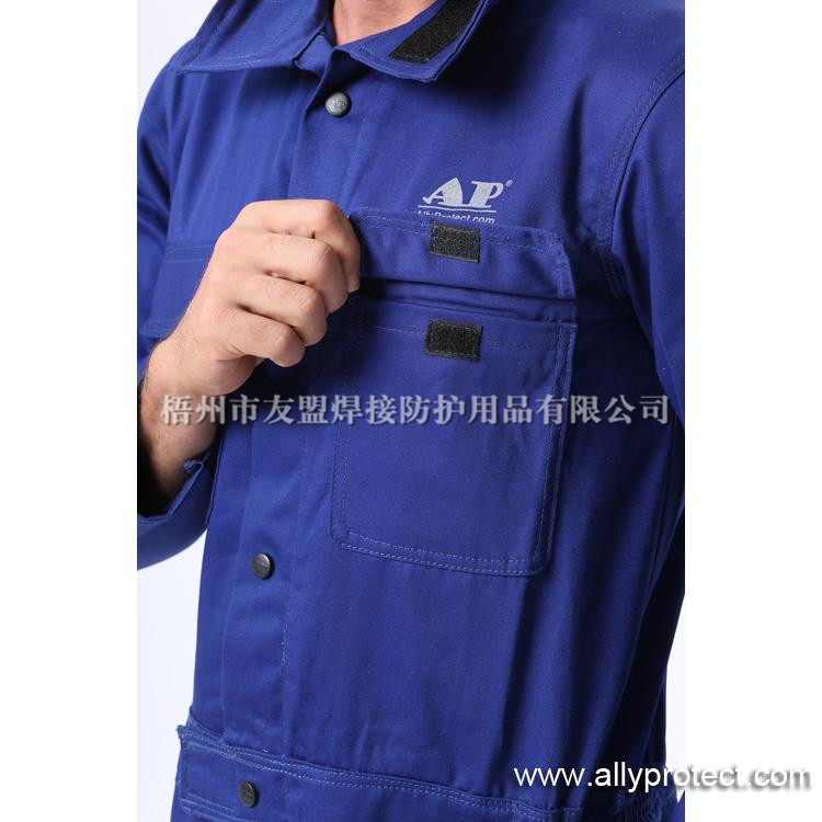 - 產品描述: 藍色連體防火阻燃服,可水洗不縮水,推薦適用于燒焊、鑄造、化工、石油、機電等有火焰或火警的危險行業。