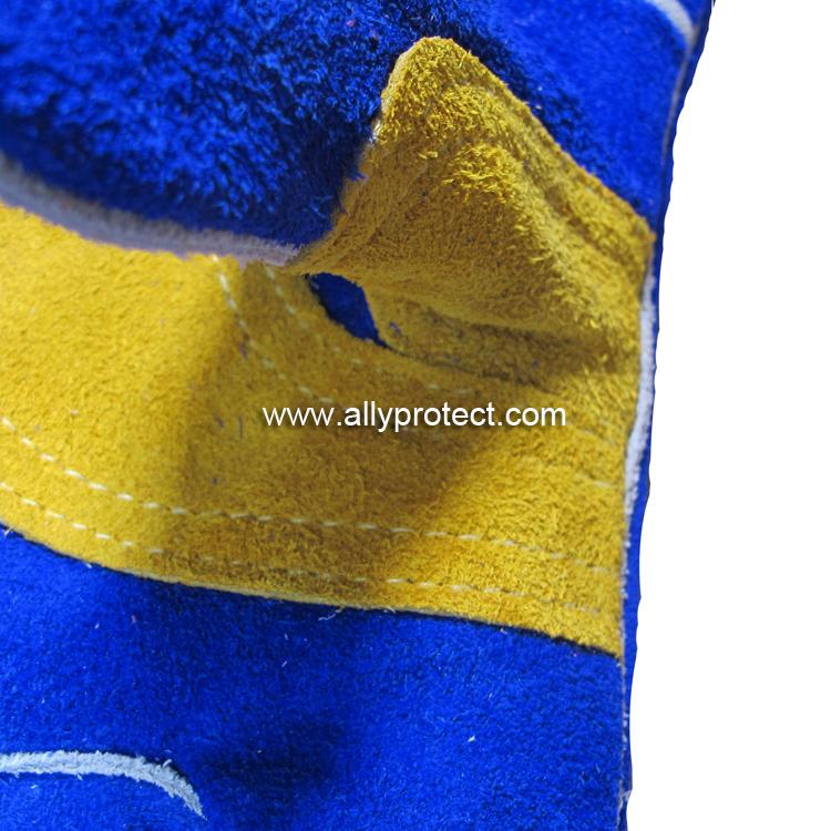 - 產品描述: [ AP ]彩藍色牛二層皮全皮電焊手套,斜拇指、加寬護掌層和護腕設計,適用于焊接、切割及搬運等用途。