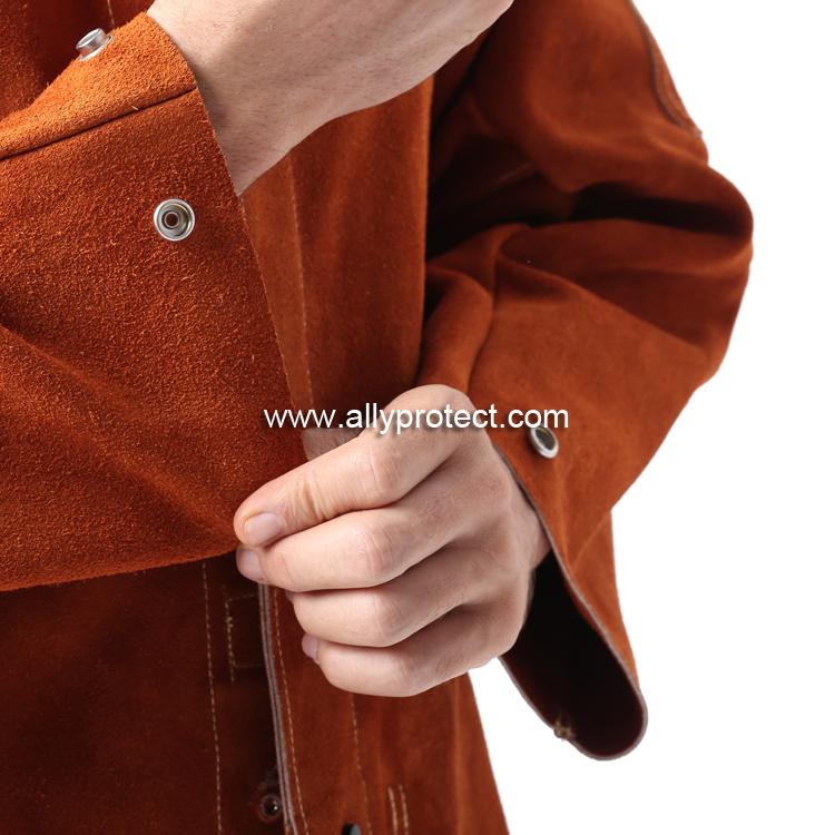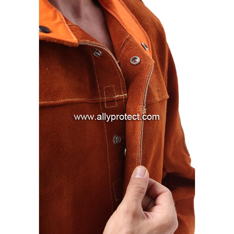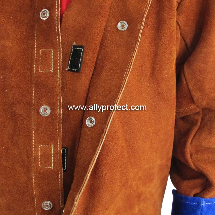 前胸防護條設計,防止燒焊飛濺物濺入衣內,雙層皮設計防止撕脫。
